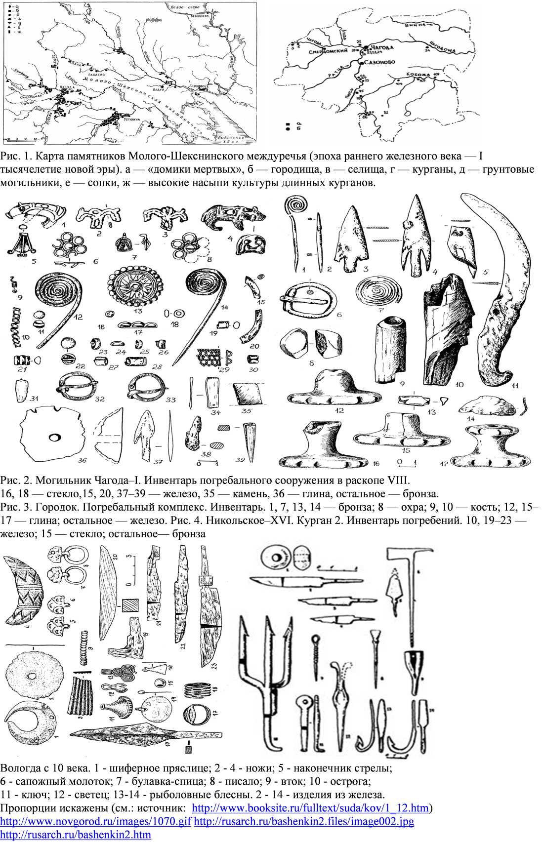 Благодаря усилиям А. Н. Башенькина и других исследователей к настоящему времени Молого-Шекснинское междуречье относительно хорошо изучено в археологическом отношении (жаль, что подобные результаты не опубликованы по Новгородской области)..